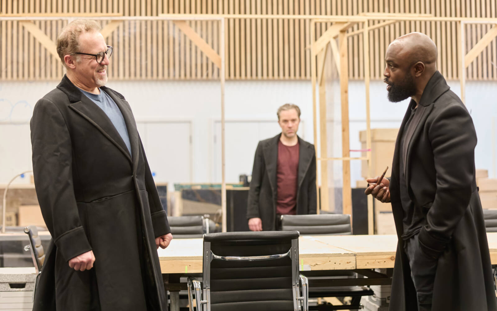 Rehearsal images have been released for the National Theatre and Neal Street Productions’ critically acclaimed, five-time Tony Award® winning production of The Lehman Trilogy. For the first time they show Michael Balogun, Hadley Fraser and Nigel Lindsay taking on the roles of the Lehman brothers, and a whole cast of characters, including their sons and grandsons! They are joined by pianist, Yshani Perinpanayagam.